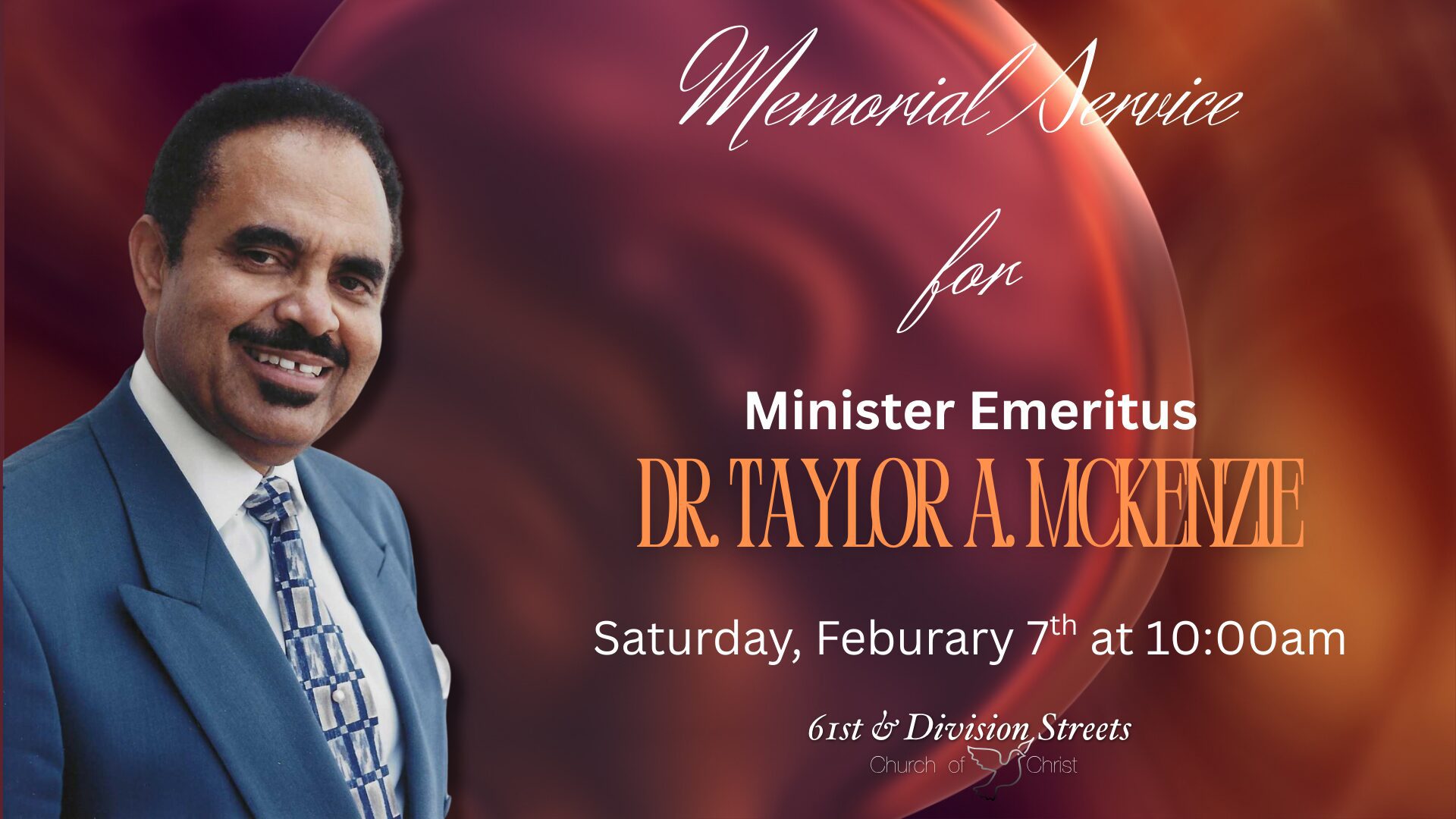 On behalf of the 61st and Division Streets Church of Christ, we extend our sincere gratitude and appreciation for the outpouring of love and support following the loss of our Minister Emeritus, Dr. Taylor A. McKenzie.